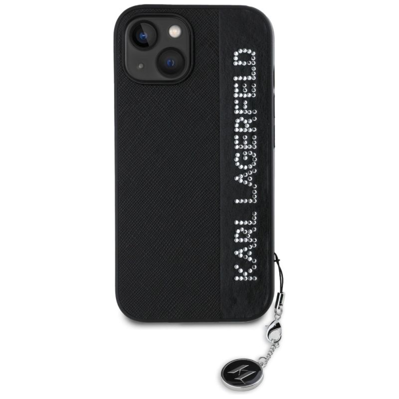 Karl Lagerfeld Saffiano Rhinestones & Charm case for iPhone 15 / 14 / 13 - black