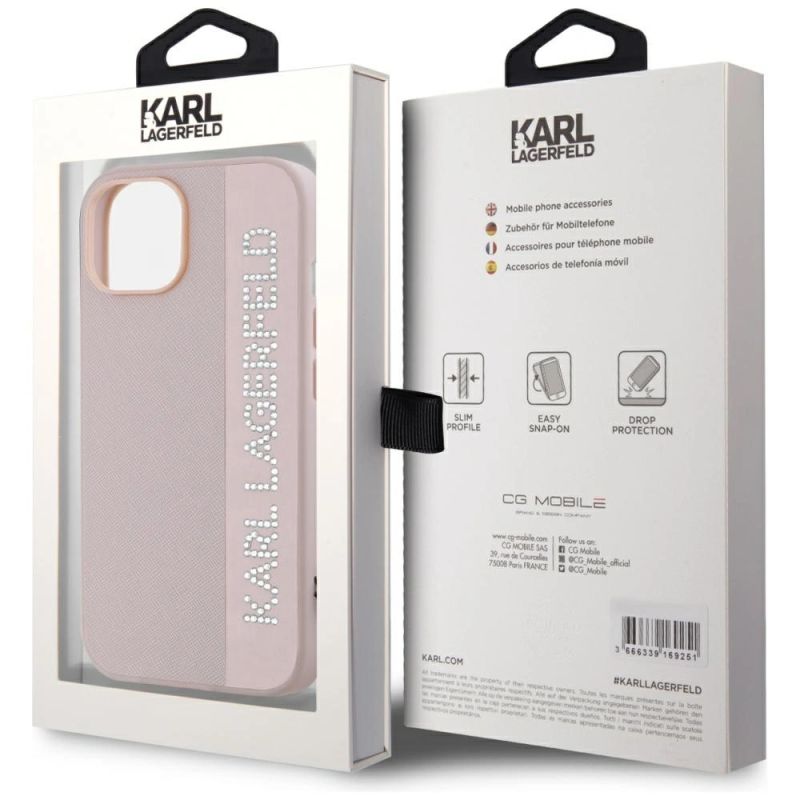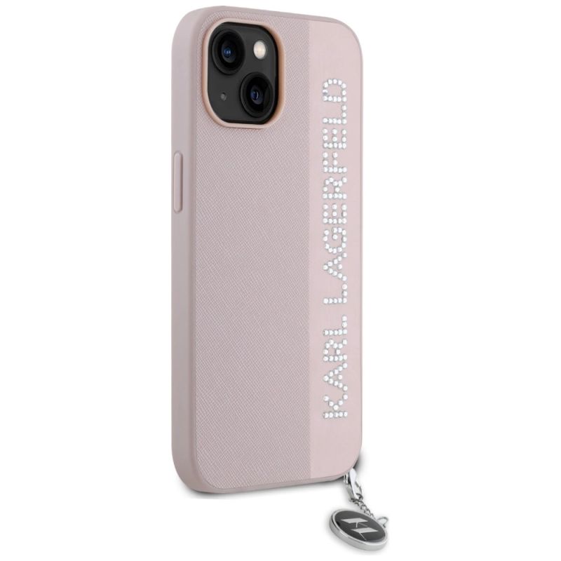 Karl Lagerfeld Saffiano Rhinestones & Charm case for iPhone 15 / 14 / 13 - pink