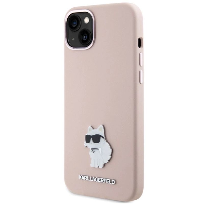 Karl Lagerfeld Silicone Choupette Metal Pin Case for iPhone 15 Plus / 14 Plus - Pink