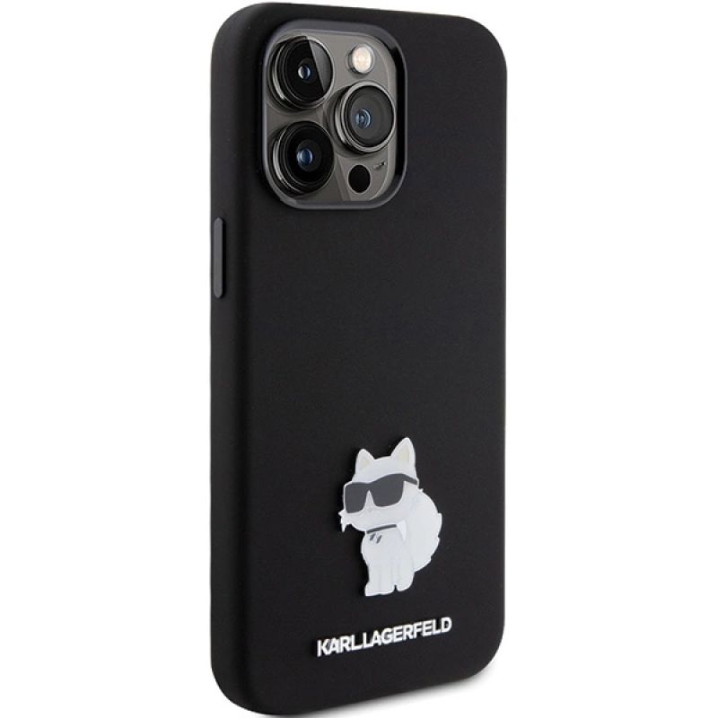 Karl Lagerfeld Silicone Choupette Metal Pin case for iPhone 15 Pro - black