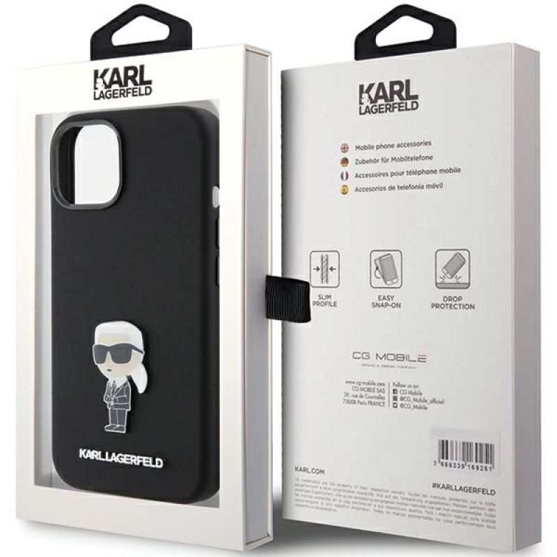 Karl Lagerfeld Silicone Ikonik Metal Pin case for iPhone 15 - black