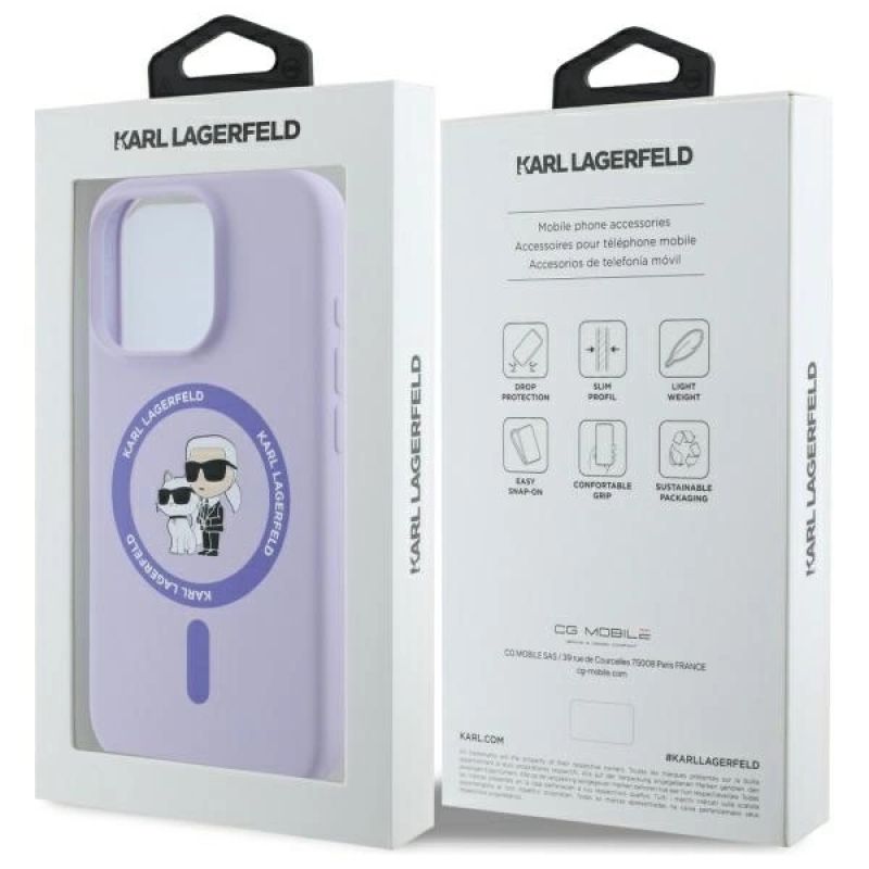 5. Karl Lagerfeld Silicone Karl&Choupette Heads Ring MagSafe Case for iPhone 16 Pro - Purple