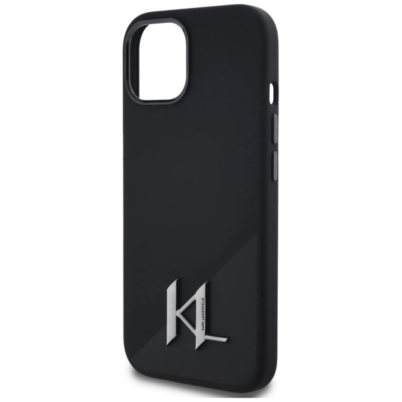 Karl Lagerfeld Silicone Shadow Metal Initial MagSafe Case for iPhone 15 Black