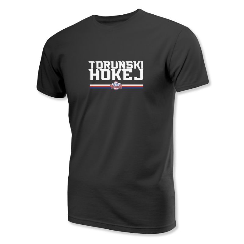 KHT Toruński Hokej Men's Short Sleeve T-Shirt. Graphics and the inscription Toruński Hokej are featured on the chest. High-quality, medium-weight men's T-shirt. Fashionable and comfortable fit. 100% cotton. Printed using FLEX technology.
