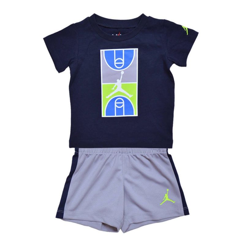 The set includes a short-sleeved T-shirt and shorts with the Air Jordan logo.