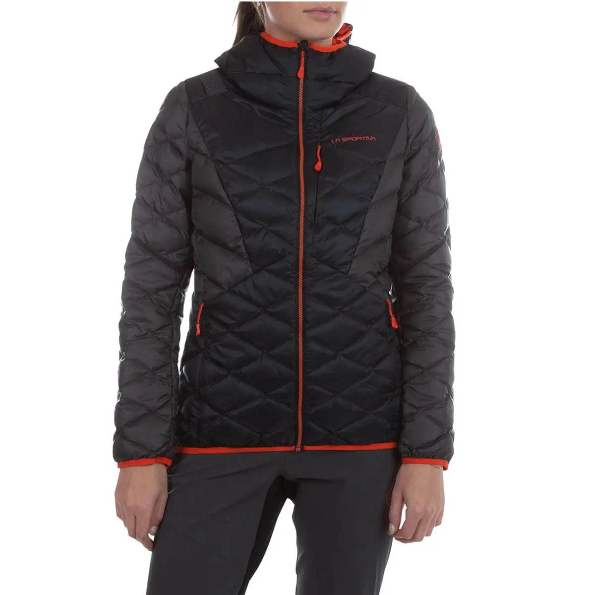 - La Sportiva Pinnacle Down Jkt W M47 999322 Black/Cherry Tomato is a high-quality down jacket, ideal for use on cold days.