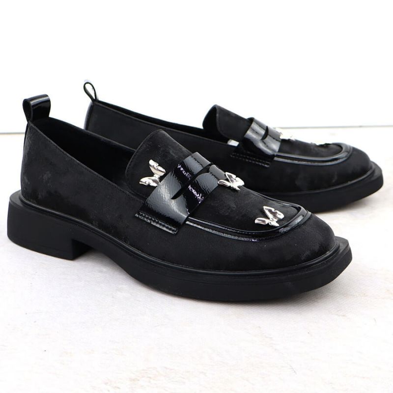Ladies' loafers with butterflies, black, Potocki SZ12650