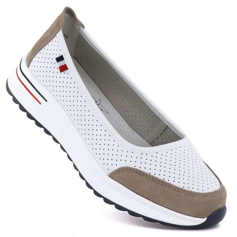 Leather ballet flats with a thick sole, openwork, white Jezzi 7815