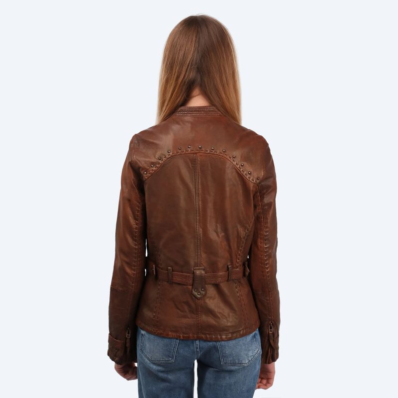 Material: lambskin. Lining: 100% cotton. Women's genuine leather jacket. - Two pockets on the front of the jacket.