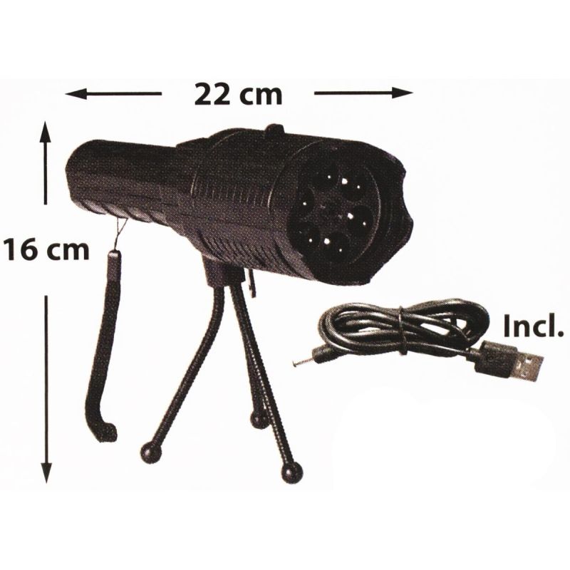 This indoor LED projector is a quick and effective way to transform any room into a magical, illuminated space! With 4 interchangeable projection foils and cool white LEDs, you can create a variety of effects in seconds—from wintry snowflakes to romantic light patterns.
