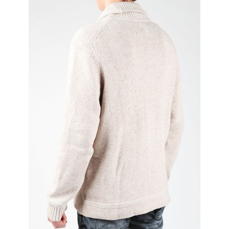 -Men's sweater with long sleeves -Button closure -High turn-down collar -2 pockets -Color: white chalk -Material: 79% cotton / 11% polyester / 7% acrylic / 3% wool