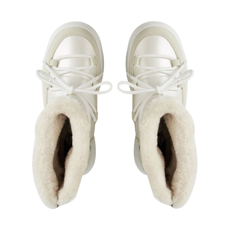 Lee Cooper Women's White Boots LCJ-25-03-3815LA These Lee Cooper women's boots are perfect for winter. They feature a textile upper with synthetic reinforcements and double-stitching. They feature a mid-cut construction. They're lined with soft, textile fur. They feature a soft insole. They feature a rear zipper. They feature a rubber outsole with a grippy tread.
