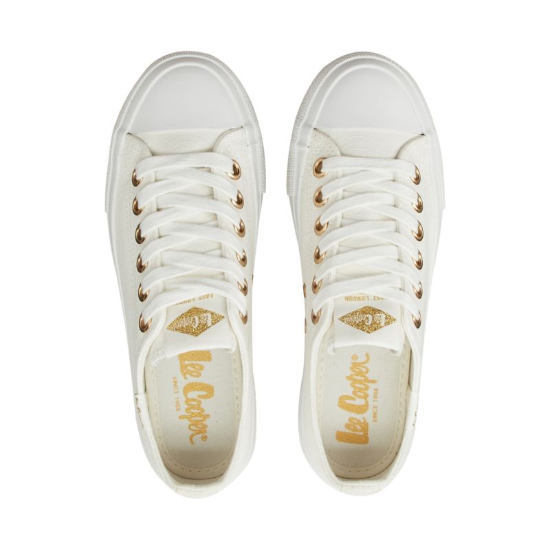 Lee Cooper Women's White Shoes LCW-26-31-4369LA These Lee Cooper women's shoes are perfect for everyday wear. They feature a textile upper with a canvas-like texture. Rubber reinforcement at the toe. Classic lacing with metal eyelets. Soft insole. Raised rubber outsole.