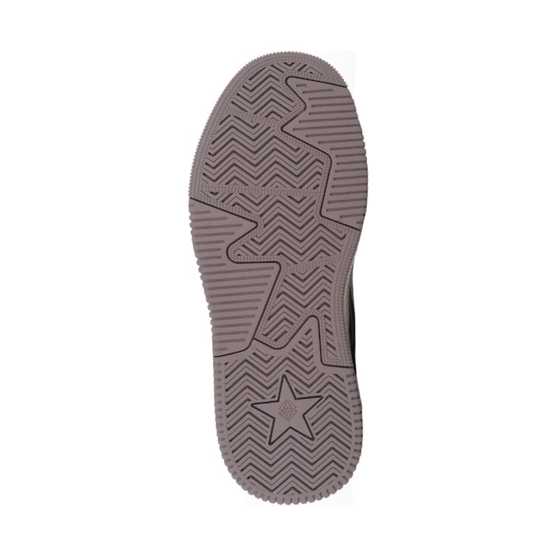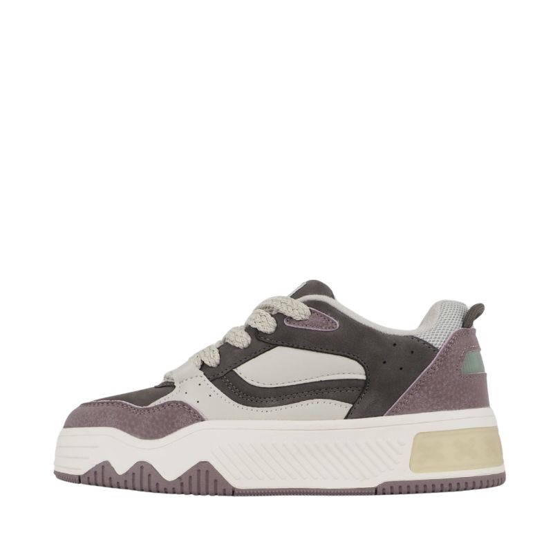 The upper combines various structures, including eco-leather imitating nubuck, synthetic leather and fabric inserts.