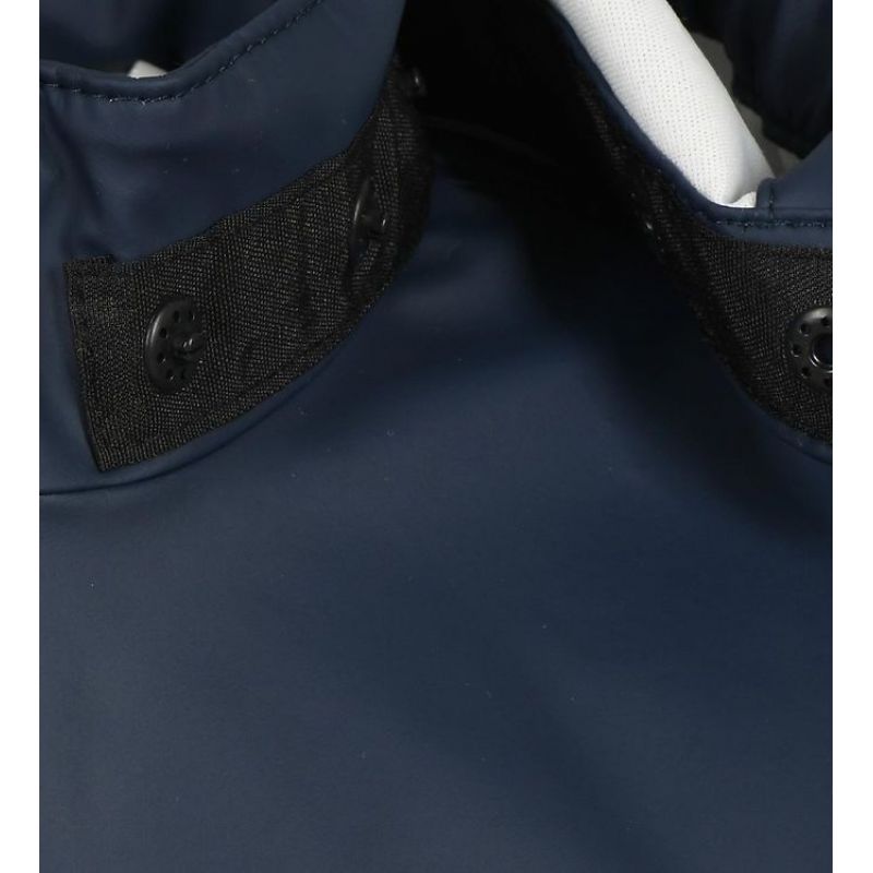 - The set includes a jacket with a detachable hood and trousers with suspenders.