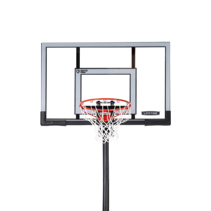 This portable basketball stand features a 50-inch backboard made with Steel-Framed Shatter-Proof technology. Shatter-Proof technology guarantees long-term durability and impact resistance thanks to a coating of the highest quality Makrolon® polycarbonate. Steel-Framed is a durable steel frame. Telescopic backboard height adjustment allows for quick and easy adjustment to various heights ranging from 240 to 300 cm, ensuring comfortable and safe play at any skill level. The entire setup is complemented by a durable rim with a flexible, tilting Slam-It® mechanism based on a double spring system, a weather-resistant nylon net, and a round pole with a diameter of 7.62 cm. The 45-liter HDPE base, which can be filled with water or sand, ensures complete stability. Perfect for intermediate and advanced basketball players.