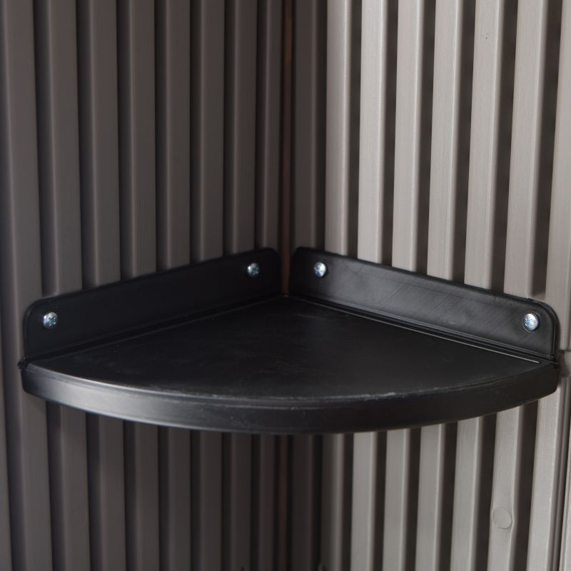 With the help of a configurable wall shelf and corner shelves, you can customize the space to your needs, and thanks to its wood-like structure, it will blend seamlessly into your garden. The walls and roof are coated with a UV-resistant protective layer to prevent fading and cracking. The stain-resistant surface never requires painting – a definite advantage over wooden sheds!
