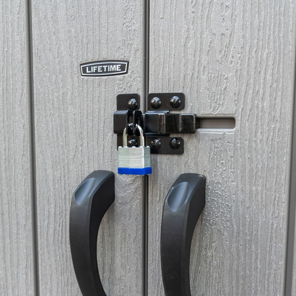Door locking: Exterior: padlockable deadbolt. Interior: two deadbolts on the left door.