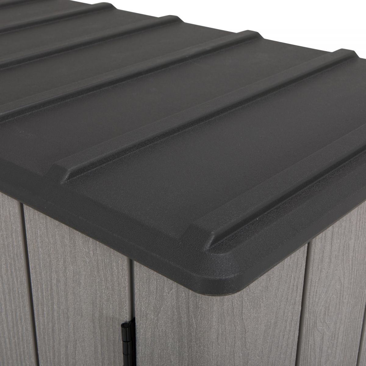 This 174 x 142 x 74 cm garden cabinet, manufactured by the US brand Lifetime, is an innovative product made of the highest quality plastic – 100% high-density polyethylene (HDPE). It's a perfect addition to a garden or home storage unit, perfect for storing garden tools or firewood. Its wood-like texture allows it to blend seamlessly into its surroundings.
