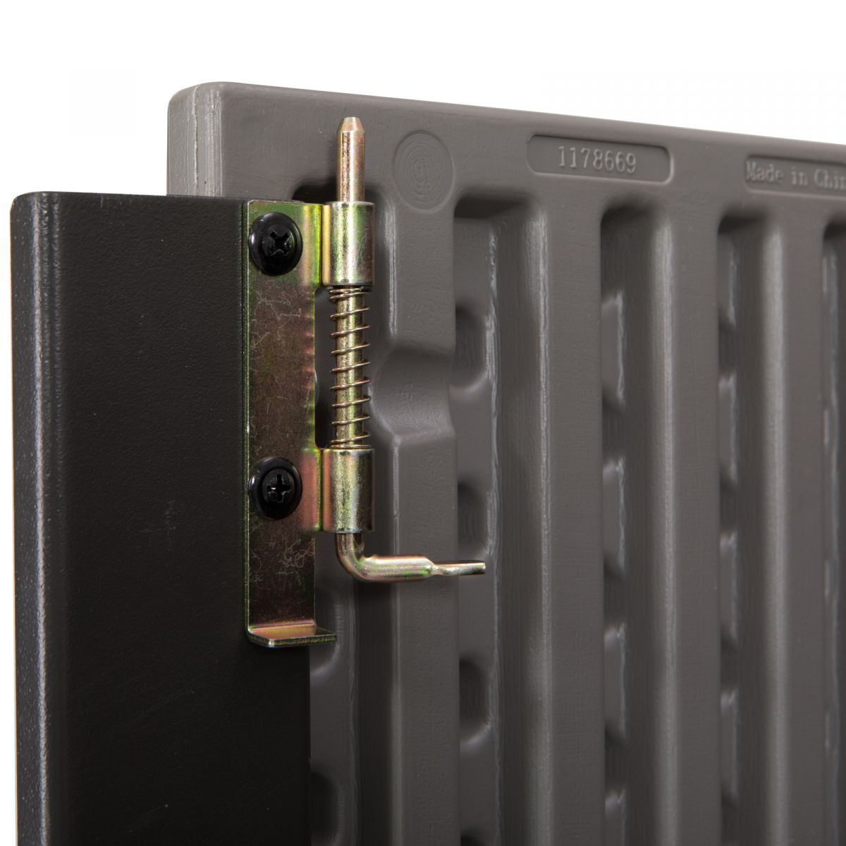 The wardrobe features six wall hooks that you can hang as desired, increasing its flexibility. The lockable double doors are secured with two latches on the left wing and one latch on the front, which can be additionally secured with a padlock.