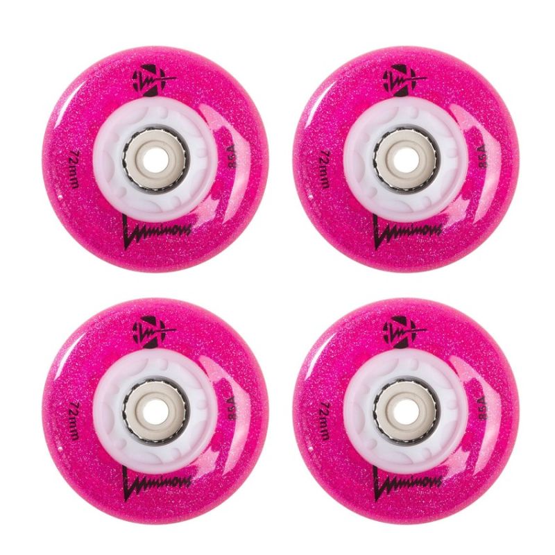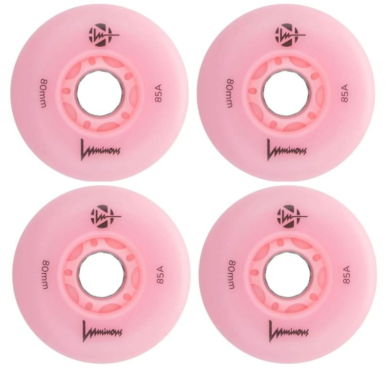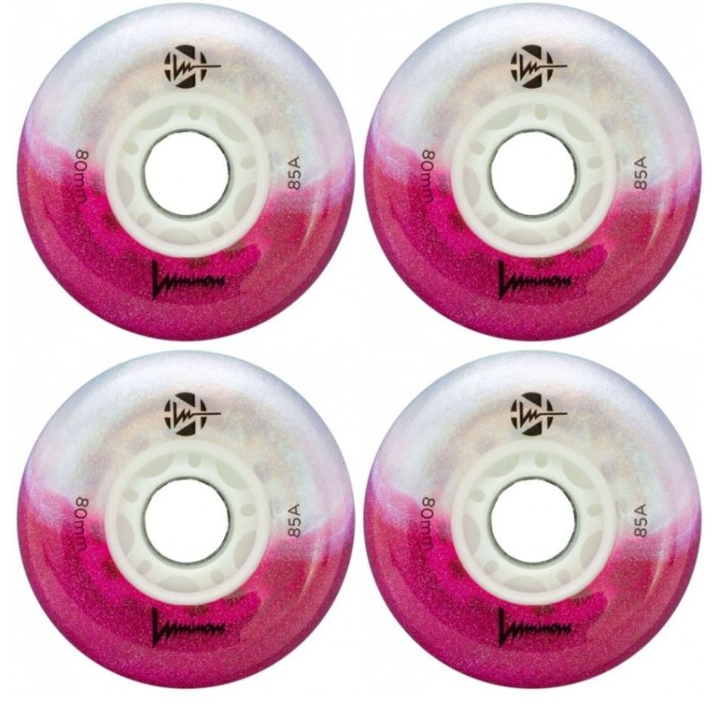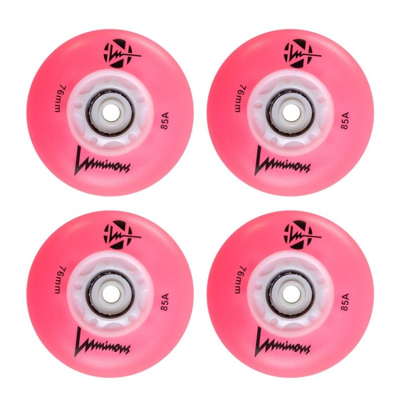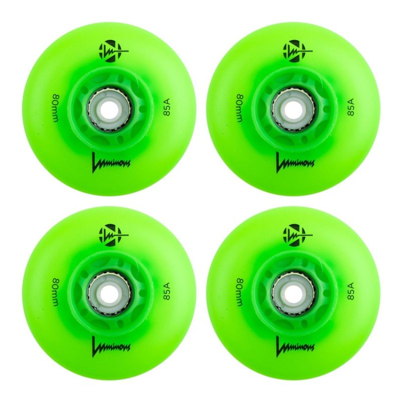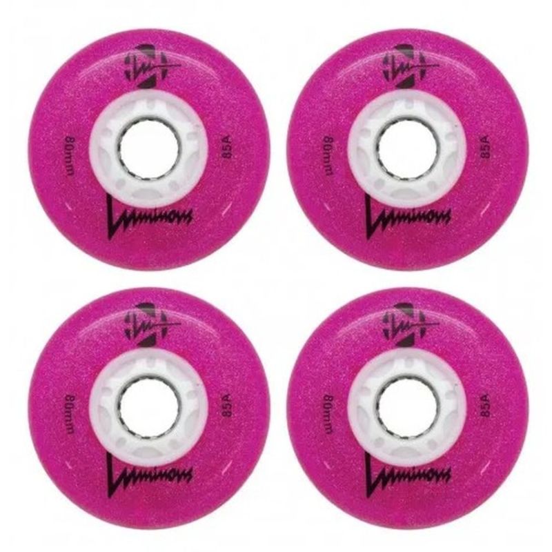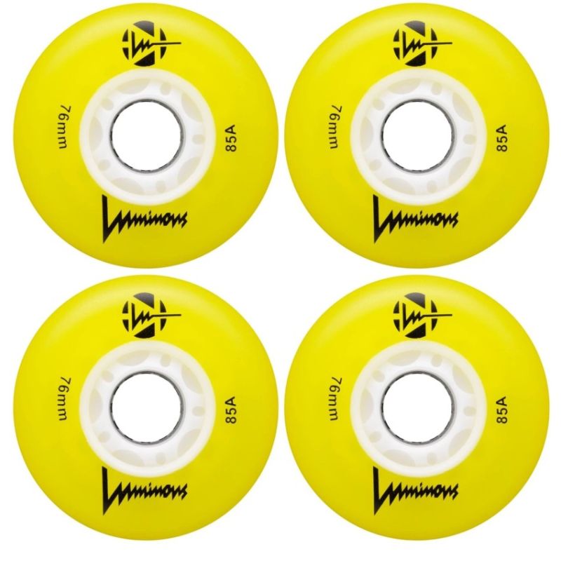 Seba LED glowing roller skate wheels They make an amazing impression while skating Designed for recreational skating and freeriding around the city Favorite for night skating and night skating Bright, reliable and fast They shine with a bright LED light Available in various colors Size: 76mm, 86mm / 85a Price is for 1 piece with an 8mm sleeve included