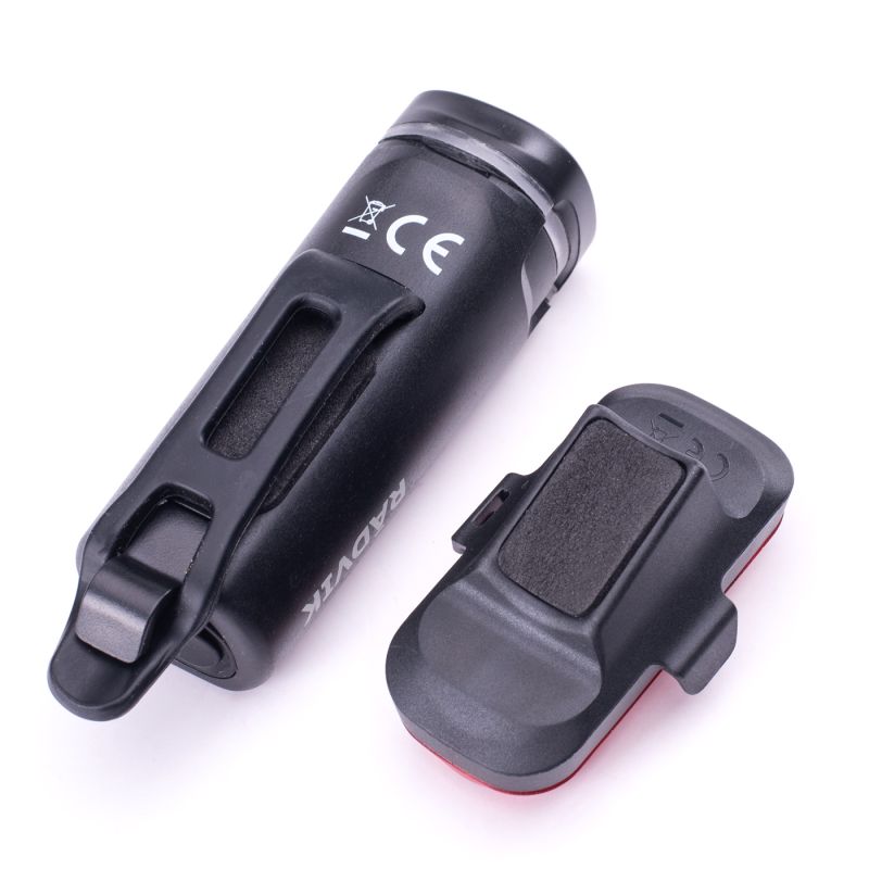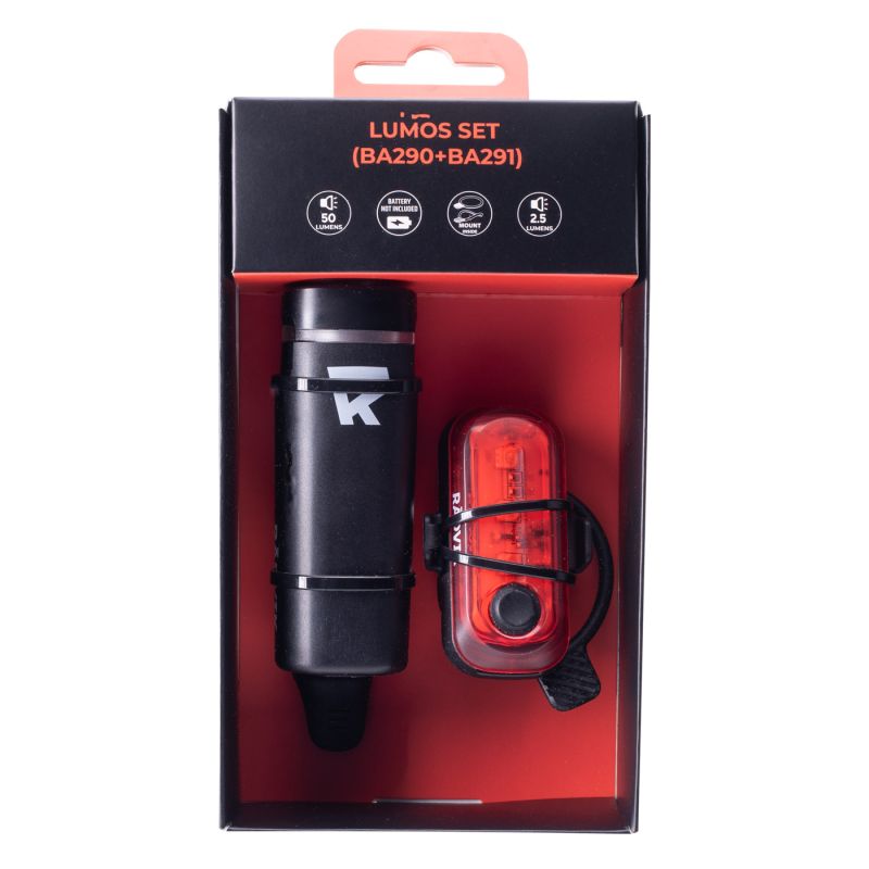 BIKE LIGHT SET FRONT LAMP SPECIFICATION: MATERIAL COMPOSITION: ABS, ELECTRONIC COMPONENTS, LED FUNCTIONS: - CONSTANT LIGHT - PULSE LIGHT SPECIFICATION: - WHITE LED LIGHTS - 50 LUMENS - IPX4 WATER RESISTANCE - POWER SUPPLY: 3 AAA BATTERIES REAR LAMP SPECIFICATION: MATERIAL COMPOSITION: ABS, ELECTRONIC COMPONENTS, LED FUNCTIONS: - CONSTANT LIGHT - PULSE LIGHT SPECIFICATION: - RED LED LIGHTS - LUMENS: 2.5 - IPX4 WATER RESISTANCE - POWER SUPPLY: 2 AAA BATTERIES