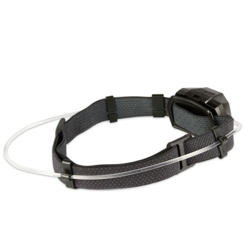- The rain-resistant flashlight is mounted on an elastic strap that can be adjusted to comfortably fit any user, regardless of age, height or body type.