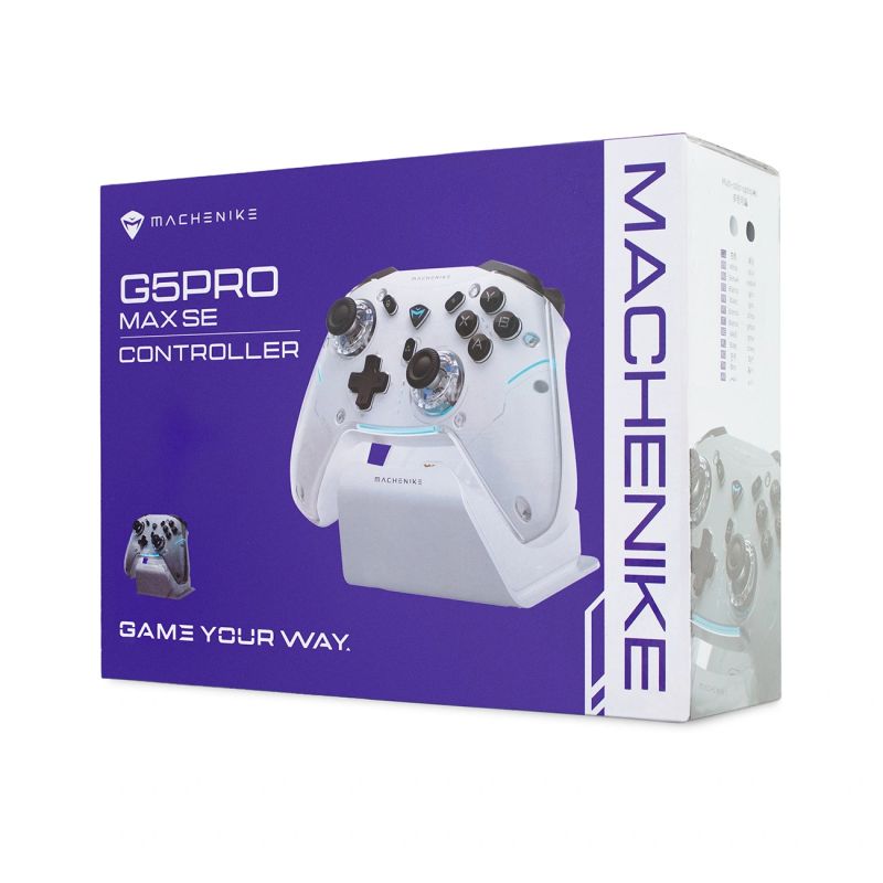 The Machenike G5Pro Max is a wireless gaming controller designed for gamers who demand smooth response, stable control, and extensive customization options. It offers precise, drift-free analogs, high responsiveness, programmable rear buttons, and motion control with enhanced vibration feedback. Its three connection modes make it suitable for consoles, PCs, and mobile devices. A dedicated app allows you to create profiles, remap buttons, adjust sensitivity, and customize the controller to your exact playstyle. The included docking station allows you to easily store and charge the controller. It's a versatile solution for those who want complete control over their game and hardware.