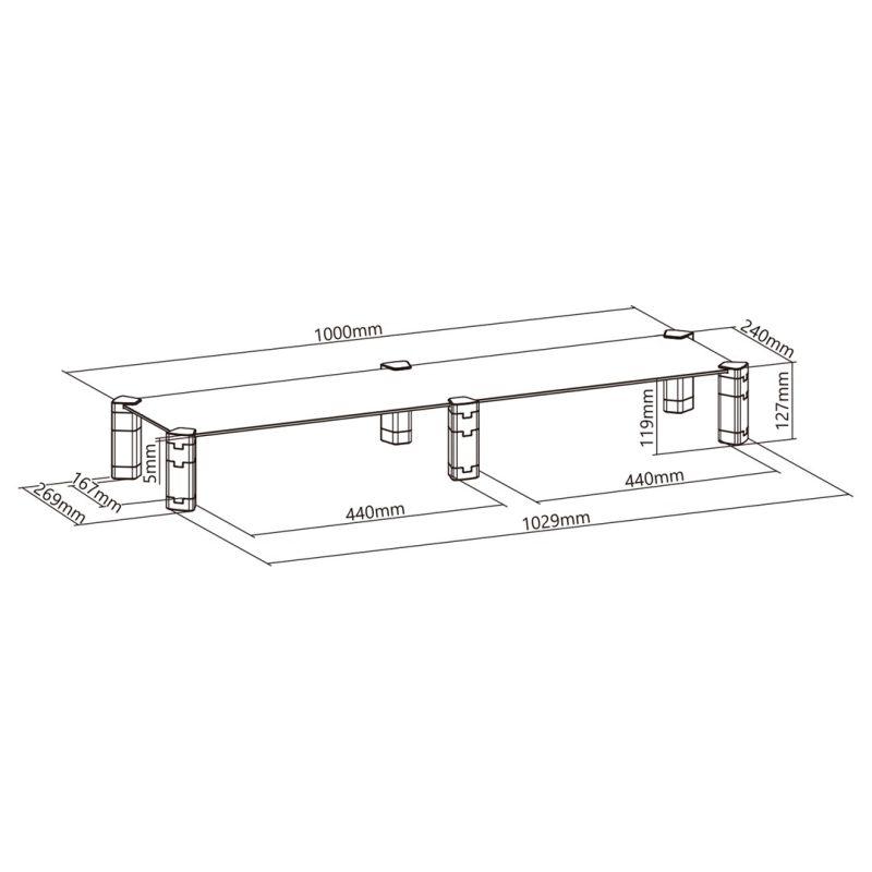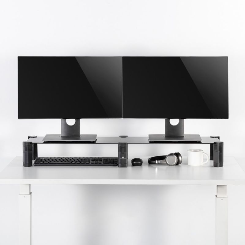 Maclean dual monitor stand, max. 20kg, tempered glass, (1029x285x127mm), MC-936