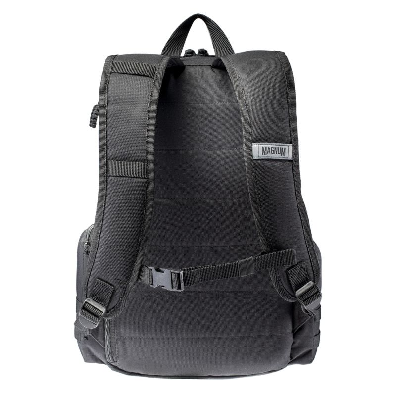 The WILDCAT backpack by Magnum features a spacious main compartment with an additional zippered pocket and an organizer. The backpack also has a laptop compartment. A Molle system on the front allows you to attach external items, such as a first aid kit or an extra pocket, to the backpack. The WILDCAT also has two zippered side pockets . Wide, adjustable shoulder straps with a chest strap allow you to adjust the backpack to fit any body type.