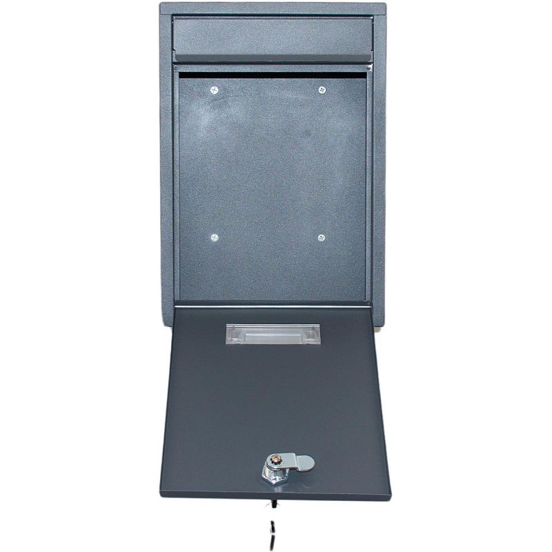 The front-facing drop slot facilitates mail delivery, providing quick and convenient access to the mailbox for the postman. An additional flap cover protects mail from rain and dirt.