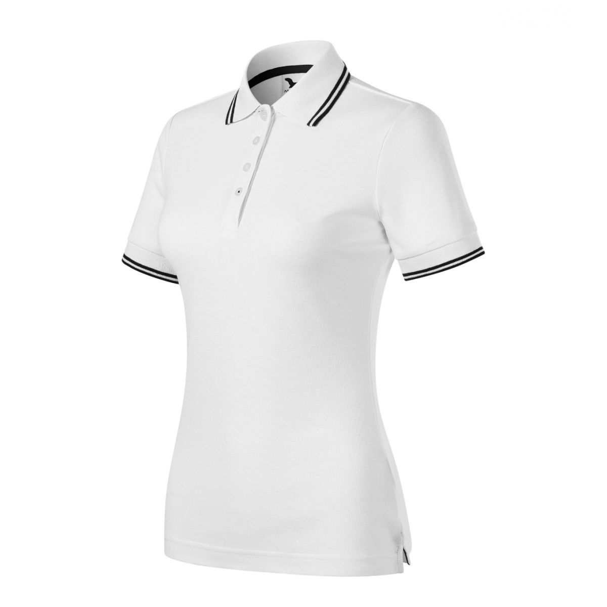 - Contrasting stripes on the sleeves and collar, narrow placket with 4 buttons in the color of the material.