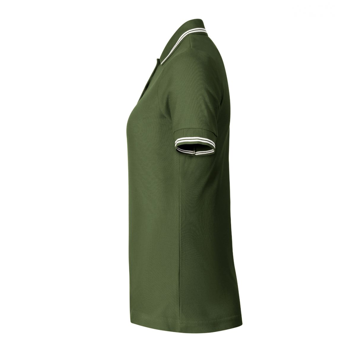 - Pique, 65% cotton, 35% polyester, fitted cut with side seams.