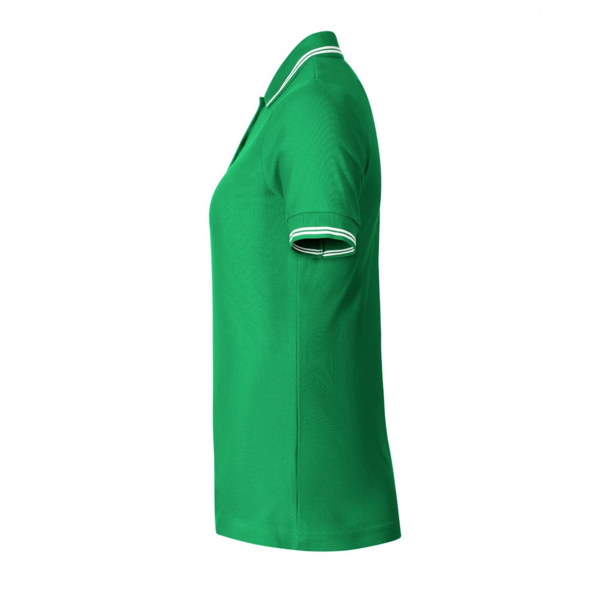 - Pique, 65% cotton, 35% polyester, fitted cut with side seams.
