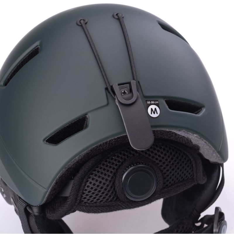 SKI HELMET SIZE: M (55-58 cm), L (58-61 cm) MATERIAL COMPOSITION: PC + EPS SPECIFICATION: - IN-MOULD TECHNOLOGY - HARD SHELL HELMET - GOGGLE HOOK - SIZE ADJUSTMENT SYSTEM - VENTILATION OPENINGS: 6 - STRAP ADJUSTMENT CLIP - REMOVABLE HELMET PADS