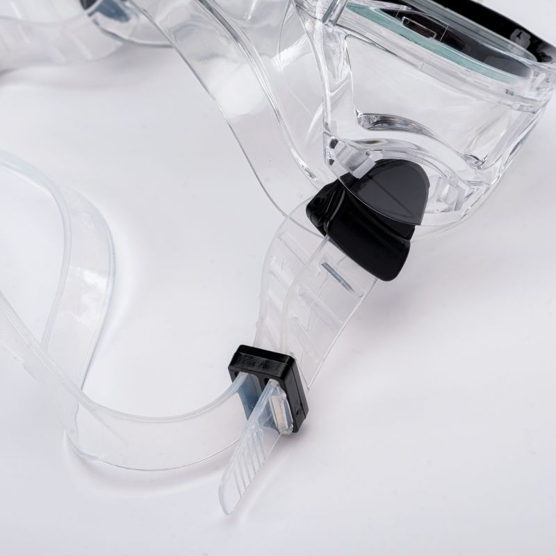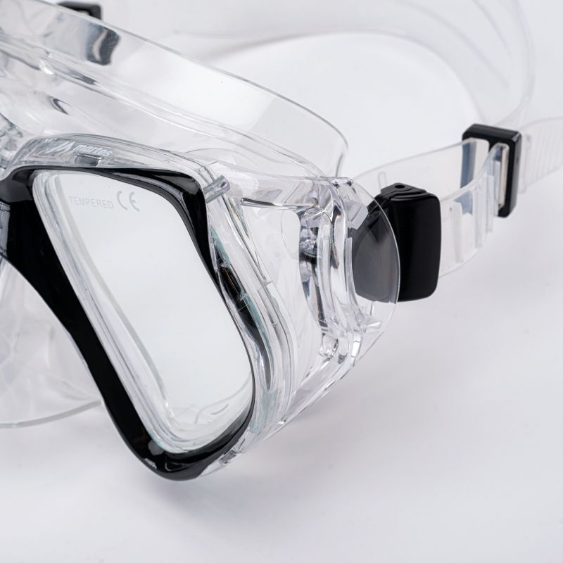 DIVING SET SIZE: ADULT MATERIAL COMPOSITION: MASK: FRAME: TEMPERED GLASS SEALING COLLAR: LIQUID SILICONE OUTER FRAME: PC INNER FRAME: PC DIVING TUBE: TUBE: PVC CONNECTION: PVC MOUTHPIECE: PVC BUTTON: PC BREAKWATER: PC SPECIFICATIONS: - TWO LENSES - TEMPERED GLASS - BREAKWATER - EASY ADJUSTMENT - BOTTOM VALVE
