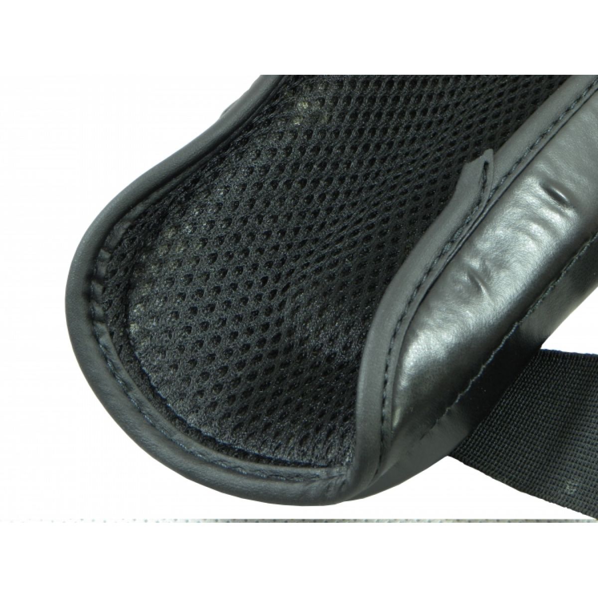 Equipped with a hard insert to protect the shin. Made of a leather-like material, it features two Velcro straps for fastening. Ideal for use in various combat sports.