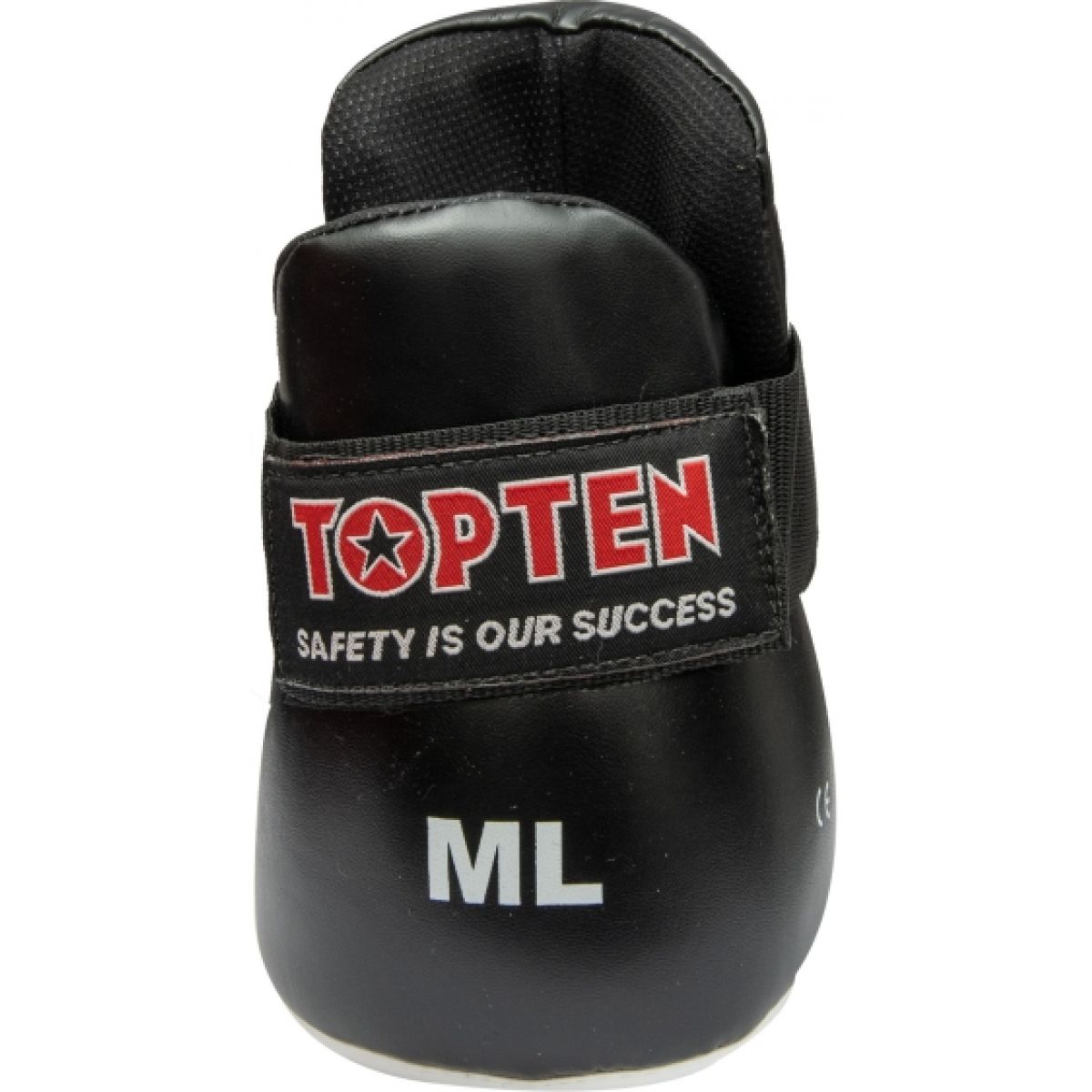 TOP TEN "FIGHT" foot protectors, made of high-quality synthetic leather. A special PPS foam filler protects against arches and ankle injuries. Hook-and-loop closure. WAKO-approved.