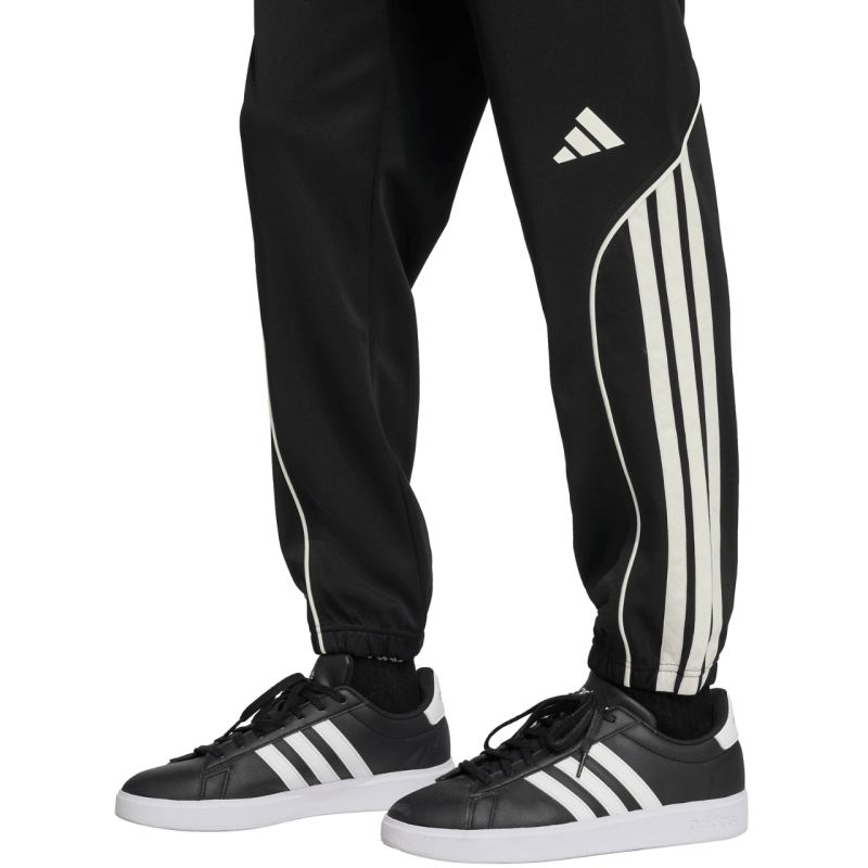Men's adidas 3-Stripes Tracksuit, Black JN1817. This adidas tracksuit is designed for men. It's perfect for soccer training or relaxing off the pitch. The zip-up sweatshirt features a stand-up collar. The regular fit is finished with elastic cuffs. The sweatpants have an elastic waistband with a drawstring. The sweatshirt has pockets. The tracksuit is made of quick-drying recycled polyester. Material: 100% recycled polyester