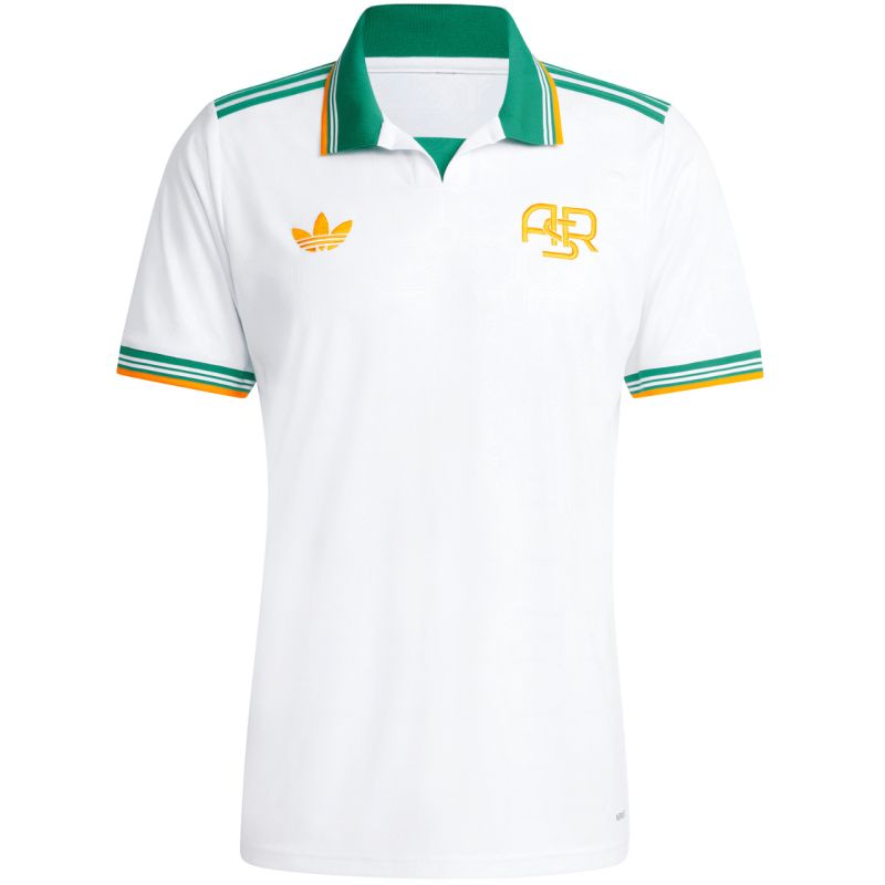 adidas AS Roma 25/26 Third Jersey Men's White JJ4185 This AS Roma men's third jersey, in its 2025/26 season version, lets you show your pride. The iconic adidas Trefoil logo and club crest are featured on the chest. Aeroready technology wicks moisture away from the skin. Slim fit. The fabric used in this jersey is recycled. Material: 100% polyester