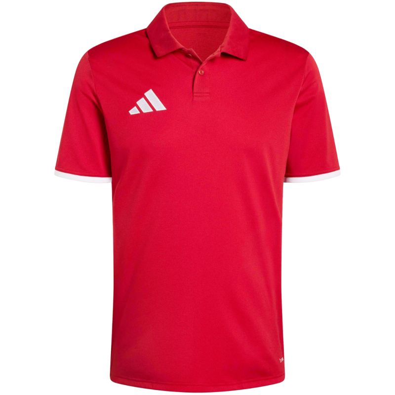 The adidas Entrada 26 Polo T-Shirt, red JZ6664, is perfect for everyday wear and training. From the Entrada line. It features a regular polo cut. It features a collar and button placket. Climacool technology helps keep you cool and dry by effectively wicking away sweat. Material: 100% recycled polyester.