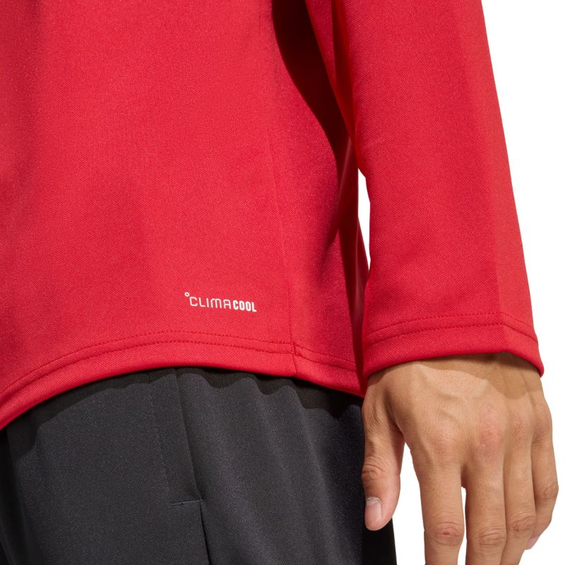 adidas Entrada 26 Training Top Men's Red JZ6650 This adidas men's sweatshirt is perfect for training. Slim fit. Mid-chest zipper. Chin guard. Climacool technology absorbs and wicks away sweat. Quick-drying fabric. Embroidered logo. Stand-up collar. Material: 100% recycled polyester