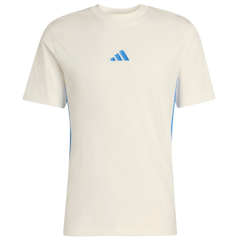 Men's adidas Essentials 3 Stripes T-Shirt, Cream KC0888. This adidas men's T-shirt is perfect for everyday wear. Regular fit. Stripes on the sides. Small brand logo on the front. Soft-touch fabric. Material: 100% cotton