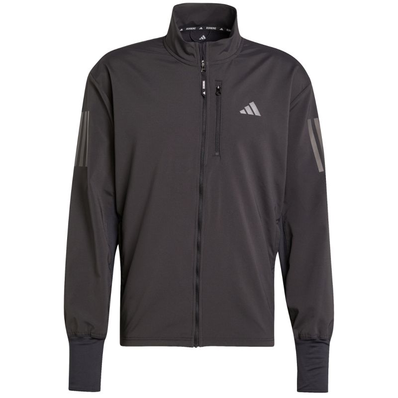 adidas Own The Run Winterized Men's Jacket, Black JP3815. This lightweight adidas men's jacket is perfect for running. The full-length zipper provides ample space for your essentials. Hidden side pockets with zippers and an additional zippered chest pocket offer plenty of space for your essentials. Specifications: Regular fit Full zip 88% recycled polyester, 12% elastane Climawarm Reflective details Hidden side pockets with zippers Elastic hem Long cuffs with thumbholes