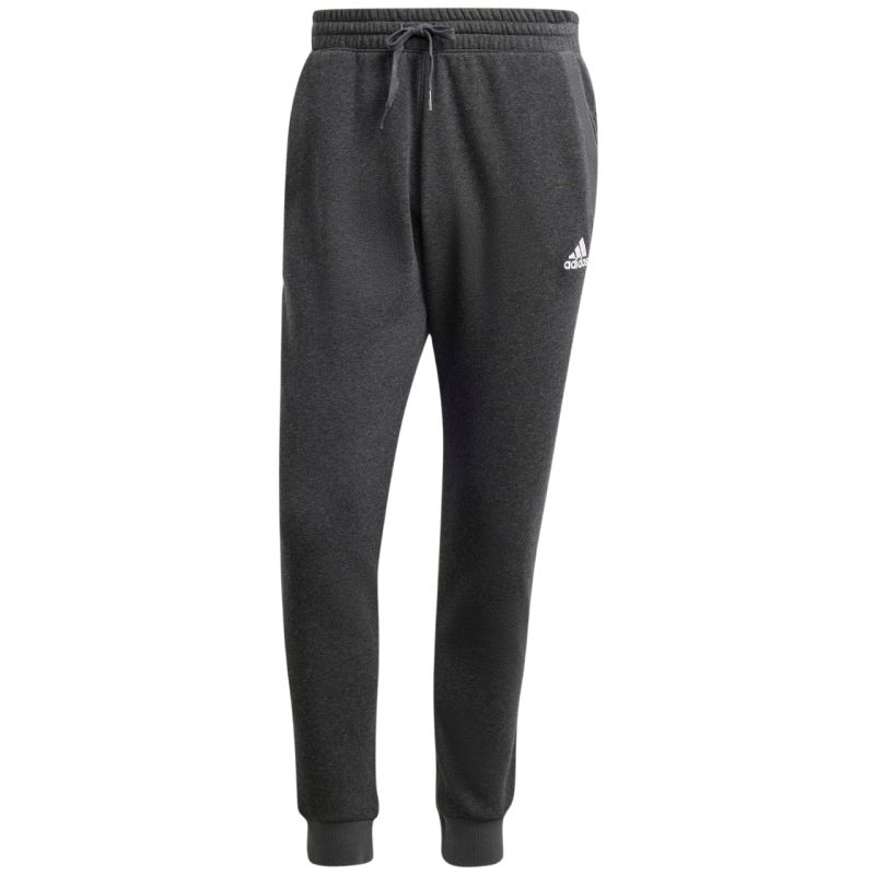 Men's adidas Seasonal Essentials Mélange Pants Gray IW6357. These men's adidas pants with tapered legs offer unrestricted movement, ensuring full mobility and comfort in every position. They feature a soft cotton and polyester blend. Elastic, ribbed cuffs. An adjustable waistband with an external drawstring. Open pockets. A sporty design features a discreet adidas logo. Material: 70% cotton, 30% recycled polyester