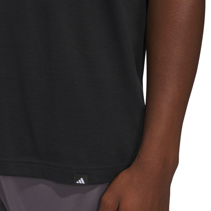 adidas Summer Sunset Graphic Men's T-Shirt, Black KC9243. This men's adidas T-shirt features a regular fit and is made of lightweight, breathable single jersey fabric for everyday comfort. The soft material adapts well to the body and is perfect for warmer days. The "Summer Sunset" graphic adds a casual, summery feel, while the adidas logo emphasizes the sporty feel and quality craftsmanship. Material: 100% cotton