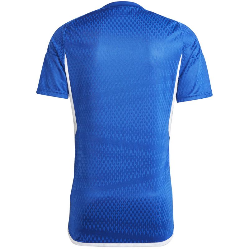Men's adidas Tiro 23 Competition Match Jersey, Blue HT5684. This adidas men's jersey is perfect for football matches. Slim fit. V-neck. Mesh underarm panels. Aeroready technology wicks away excess moisture. Recycled fibers. Material: 100% recycled polyester