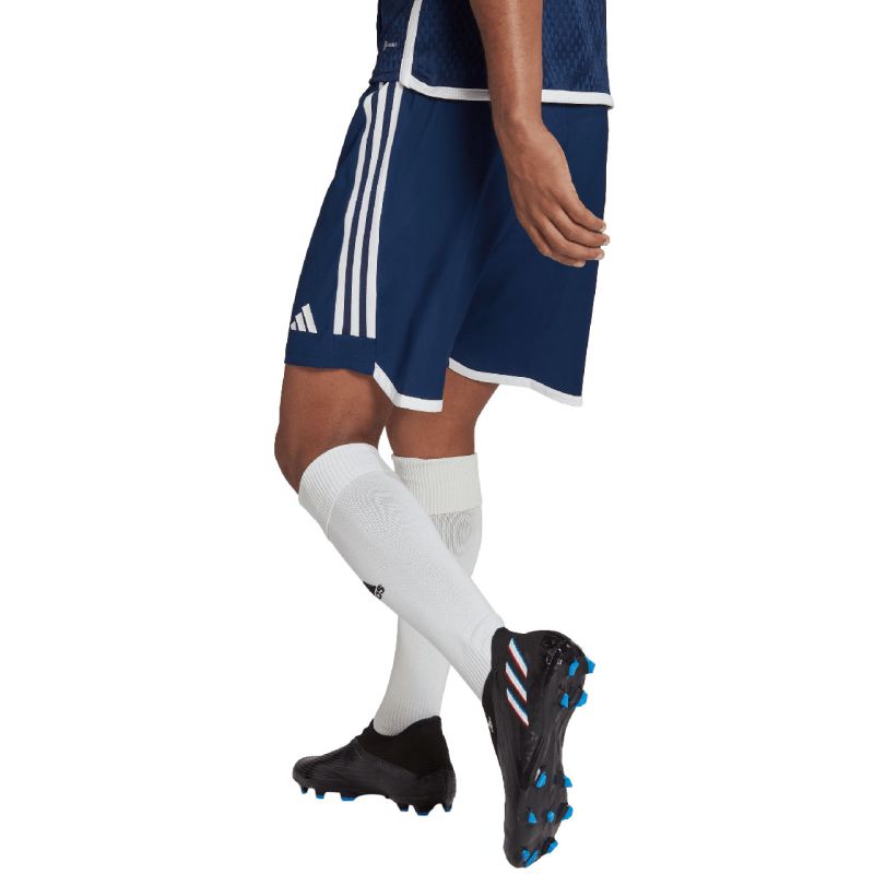 Men's adidas Tiro 23 Competition Match Shorts, Navy Blue (HT5697). These men's adidas shorts are perfect for match play. This model is part of the Tiro 23 line. The elastic waistband is adjustable with an internal drawcord. Aeroready technology helps wick excess moisture away from the body. Material: 100% recycled polyester