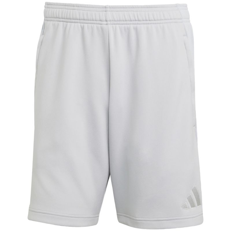 adidas Tiro 25 Travel Men's Shorts, Gray JY5946. Part of the Tiro line, these adidas men's shorts are perfect for resting between training sessions. Quick-drying polyester fleece. Regular fit. Elastic waistband with internal drawcord. Zippered side pockets. Material: 100% recycled polyester