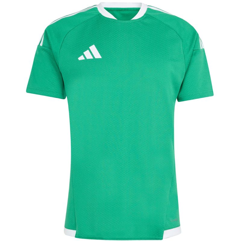 Men's adidas Tiro 26 Competition Match Jersey Green KA6235 This adidas men's jersey is perfect for football matches. Slim fit. Crew neck with a subtle collar. Mesh panels. Climacool technology wicks and disperses sweat. Recycled fibers. Heat-transfer logo. Shoulder straps. Material: 100% recycled polyester